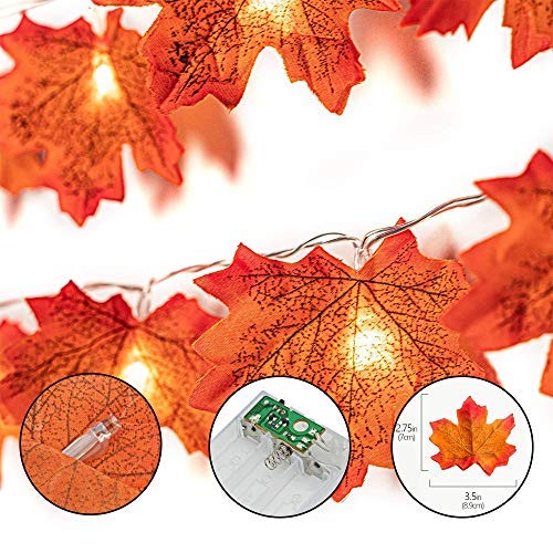 • 🍁Perfect Decoration: This battery operated string light has 20 warm white LED lights, runs on 3 AA batteries, and can be used indoors and outdoors without extension cord or external power supply. A nice garland of illuminated lights. In this string of lights, LEDs with realistic imitation of maple leaves are mixed with beautiful autumn colors.